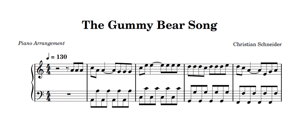 I'm a Gummy Bear (The Gummy Bear Song)€3.99+€3.99+https://schema.org/InStockeurPiano Tutorials Sheet MusicPiano Tutorials Sheet MusicName a fair price:€Add to cartAdd to wishlist New wishlistShare on XShare on Facebook Copy linkCopy product URL